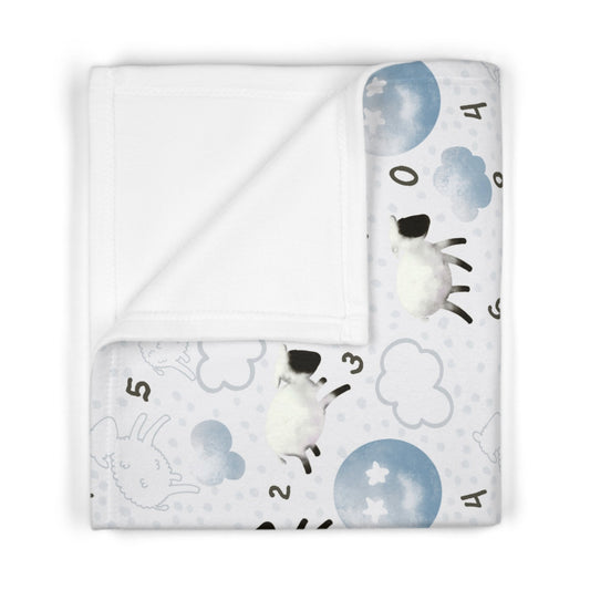 Counting Sheep in Blue Soft Fleece Baby Blanket