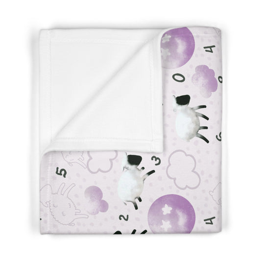 Counting Sheep in Purple Soft Fleece Baby Blanket