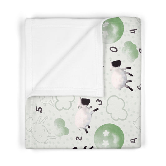 Counting Sheep in Mint Soft Fleece Baby Blanket