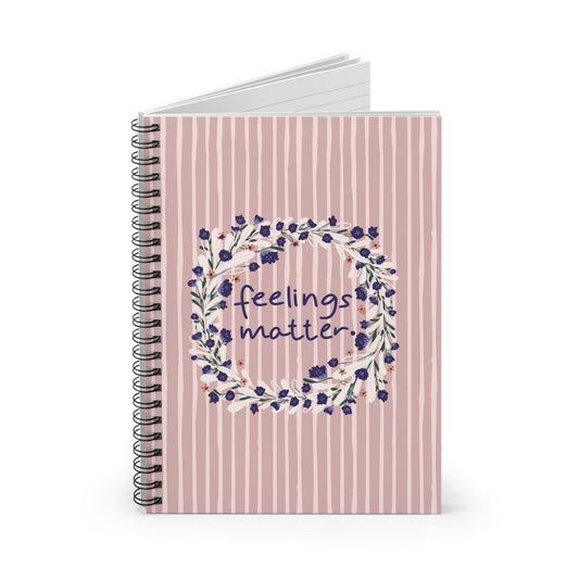 Feelings Matter in Floral Wreath Candy Pink Drip Stripes Spiral Notebook - Ruled Line