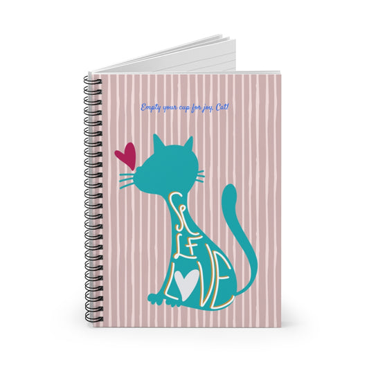 Self Love Cat in Pink Stripe background Spiral Notebook - Ruled Line